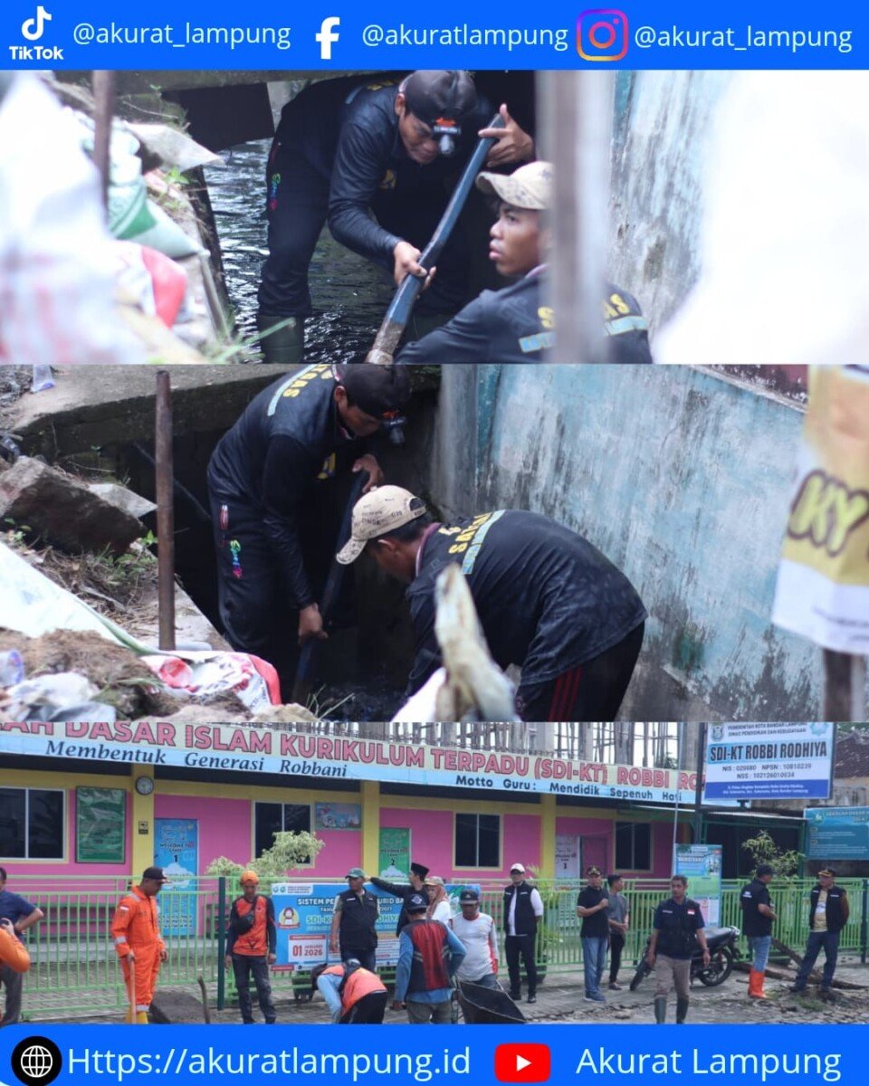 Akuratlampung, Bandar Lampung – Tanpa kenal lelah Tim Satgas Lapangan Kota Bandar Lampung beserta anggota pamong kecamatan setempat bekerjasama melakukan pembersihan drainase di Jalan Pulau Singkep, Kecamatan Sukarame, hingga Kecamatan Tanjungkarang Timur pada Sabtu (11/4/2026).