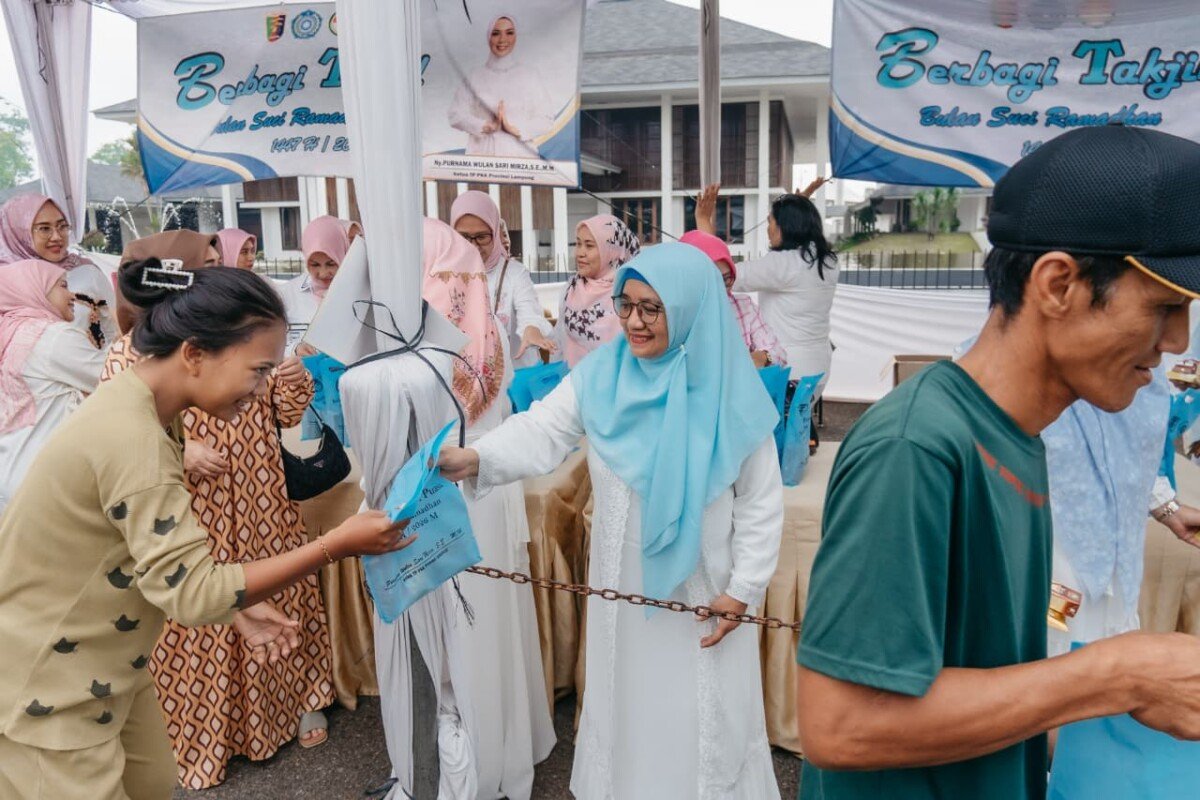 Akuratlampung, Bandar Lampung – Memasuki hari keenam pelaksanaan kegiatan berbagi takjil Ramadan 1447 Hijriah, Tim Penggerak PKK Provinsi Lampung bersama Dharma Wanita Persatuan (DWP) Provinsi Lampung kembali membagikan paket berbuka puasa kepada masyarakat di depan Mahan Agung, Minggu (01/03/2026).