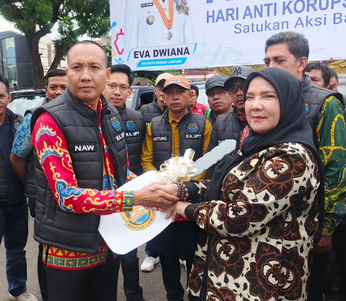 Wali Kota Bandar Lampung, Eva Dwiana, menyerahkan 10 unit mobil pick-up pengangkut sampah kepada Dinas Lingkungan Hidup (DLH) pada Jumat (5/12/2025) di halaman Kantor Pemkot.