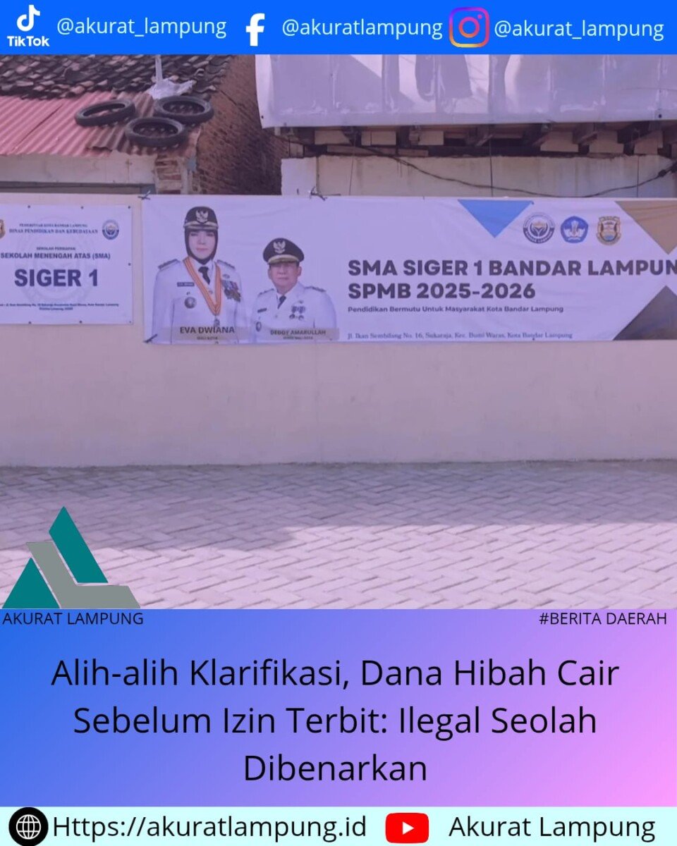 Akuratlampung, Bandar Lampung — Klarifikasi dari Yayasan Siger Prakarsa Bunda justru memunculkan persoalan baru. Ketua yayasan, Khaidarmansyah, membenarkan bahwa izin operasional Sekolah Siger masih dalam proses pengurusan dan hingga kini belum diterbitkan. Pernyataan tersebut justru menjadi boomerang karena menguatkan dugaan bahwa aktivitas sekolah berjalan tanpa dasar perizinan yang sah.