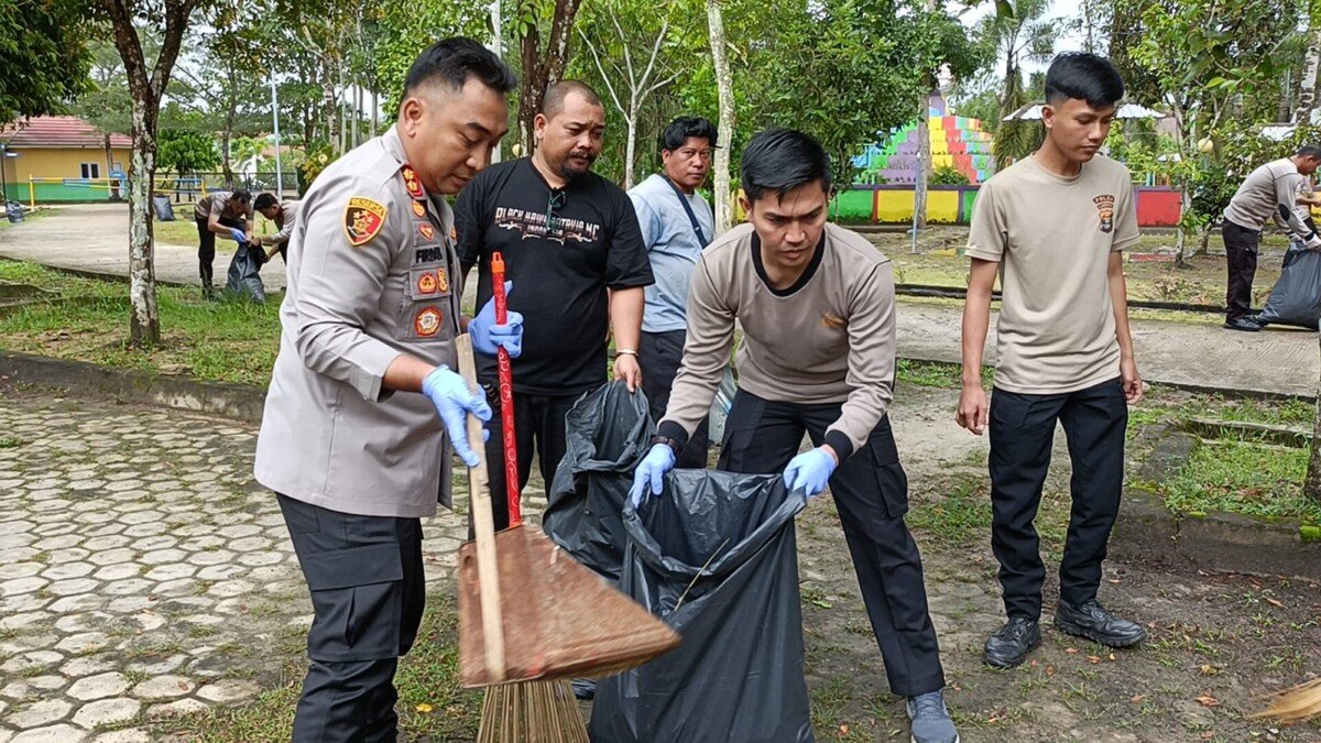 Mesuji// – Kapolres Mesuji mengusung semangat gotong royong dengan memimpin langsung kegiatan pembersihan lingkungan di objek wisata Water Park Taman Kehati, Desa Mekar Sari, Kecamatan Tanjung Raya, Kabupaten Mesuji. Jumat (06/02/2026).