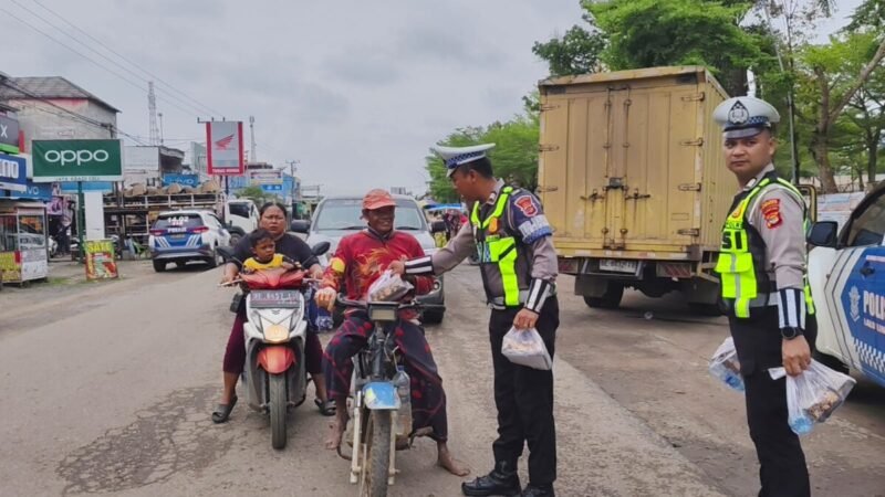 AKURATLAMPUNG – Jajaran Satuan Lalu Lintas (Sat Lantas) Polres Mesuji menunjukkan kepedulian dan mempererat kedekatan dengan masyarakat melalui kegiatan Jumat Berkah. Sebanyak 50 kotak nasi dibagikan kepada masyarakat yang membutuhkan di sekitar wilayah hukum Polres Mesuji, Jumat (13/02/2026).