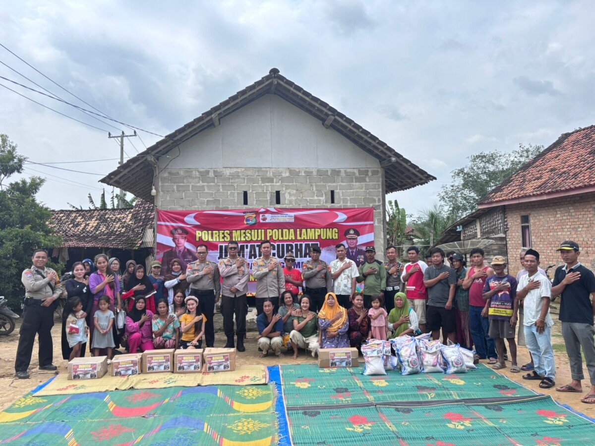 Mesuji //– Jajaran Polres Mesuji melaksanakan kegiatan “Jumat Curhat” sekaligus penyerahan bantuan kepada masyarakat Desa Labuhan Permai, Kecamatan Way Serdang. Dalam kegiatan tersebut sebanyak 25 paket sembako diberikan kepada warga kurang mampu.