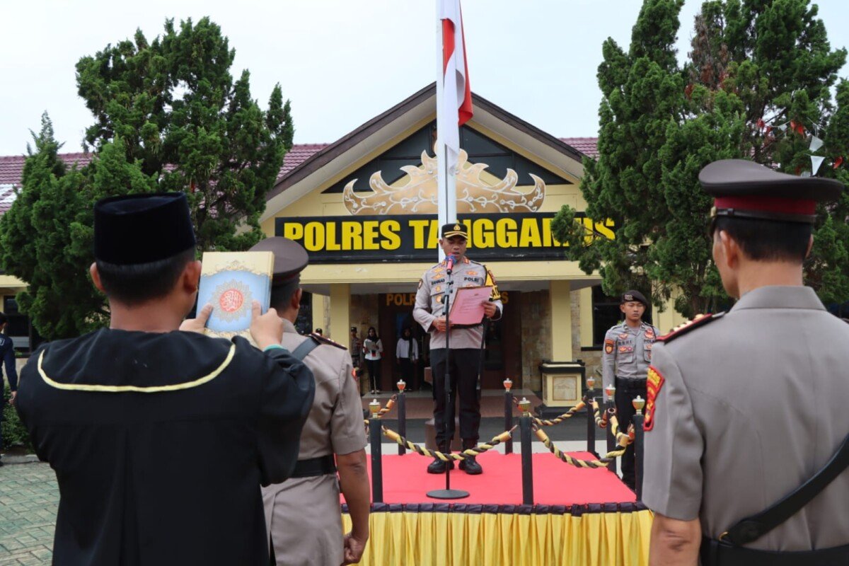 TANGGAMUS – Kapolres Tanggamus AKBP Rahmad Sujatmiko, S.I.K., M.H., memimpin upacara serah terima jabatan (Sertijab) Kapolsek Pulau Panggung sekaligus laporan kenaikan pangkat pengabdian di lingkungan Polres Tanggamus, Kamis (5/3/2026).