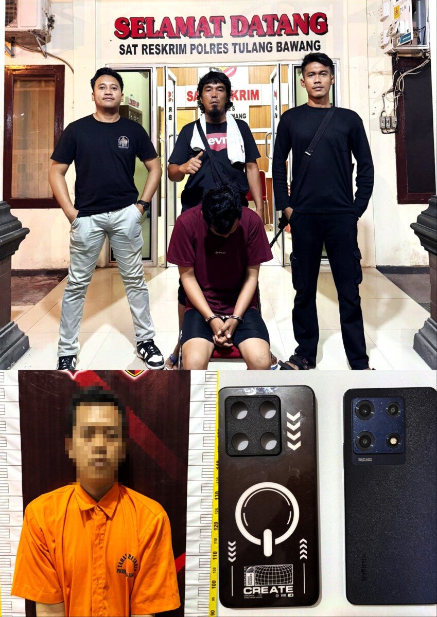 Tulang Bawang – Tim Khusus Anti Bandit (Tekab) 308 Presisi Polres Tulang Bawang, Polda Lampung, menangkap seorang pria berinisial ES (29), pelaku pencurian handphone (HP) yang terjadi di sebuah warung mie ayam, Kamis, 30 Januari 2025, sekitar pukul 14.00 WIB.
